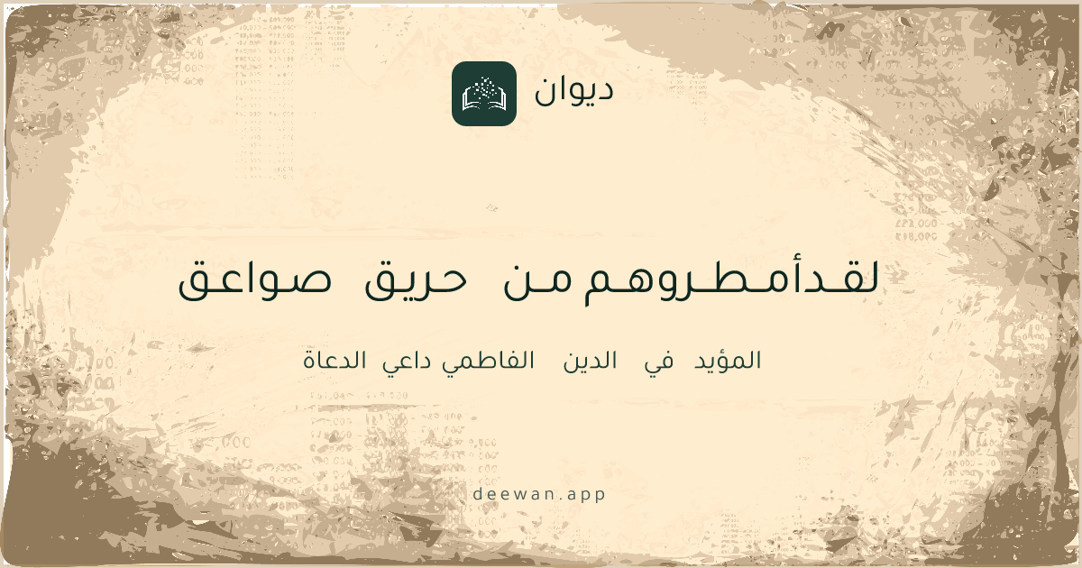العصر الفاطميالطويللقــد أمــطــروهــم مــن حـريـق صـواعـقالمؤيد في الدين الفاطمي داعي الدعاةashaarSimilarSave as image