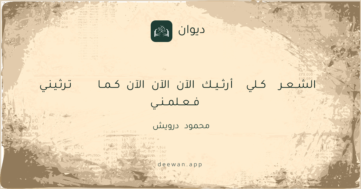 العصر الحديثشعر التفعيلةفــعــلمــنــي الشــعــر كــلي أرثــيــك الآن الآن الآن كــمــا تـرثـيـنـيمحمود درويشashaarSimilarSave as image