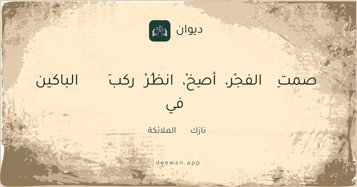 العصر الحديثشعر التفعيلةفي صمتِ الفجْر, أصِخْ, انظُرْ ركبَ الباكيننازك الملائكةashaarSimilarSave as image