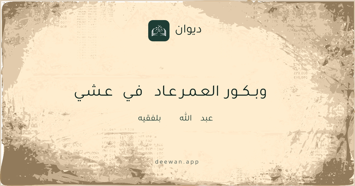 وبــكــور العـمـر عـاد فـي عـشـي